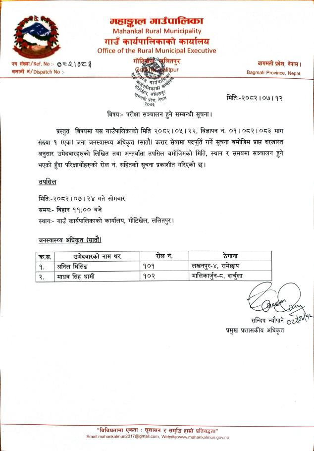 परीक्षा सञ्चालन हुने सम्बन्धी सूचना।